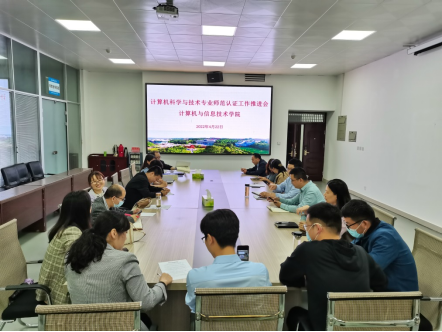 4月22日,计算机与信息技术学院在计算机楼203会议室召开计算机科学与技术专业师范认证工作推进会,学院党委书记熊炎、院长冯岩等同志参加会议,会议由副院长刘道华主持。