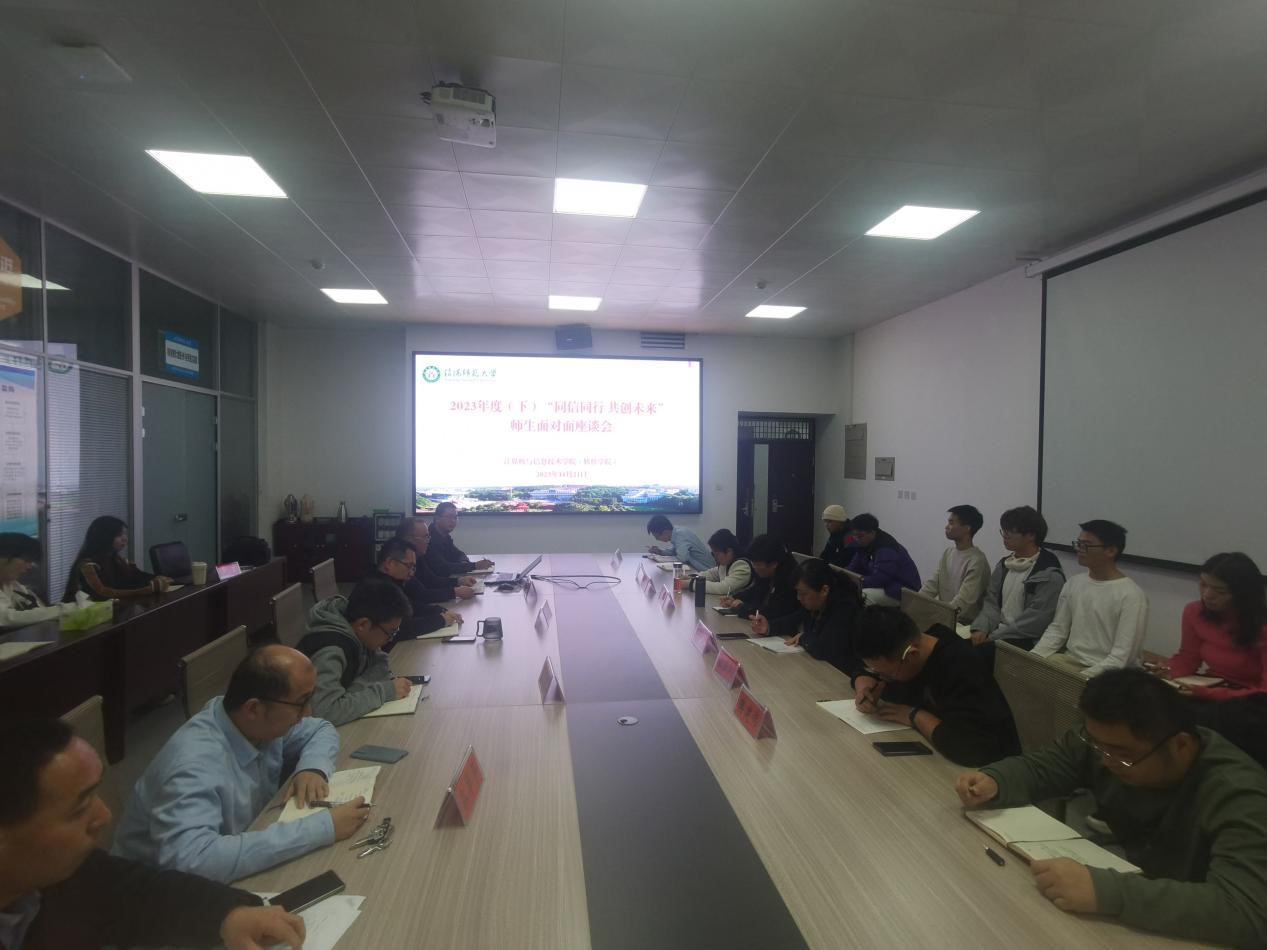 2023年11月21日下午,欧乐影院 在计算机楼203会议室召开“同信同行 共创未来”师生面对面座谈会。学院班子成员、教学督导专家、系(实验室)主任、实习实训中心主任、教学工作秘书、各班级学生代表等40余人参加了座谈会。会议由副院长刘道华教授主持。
