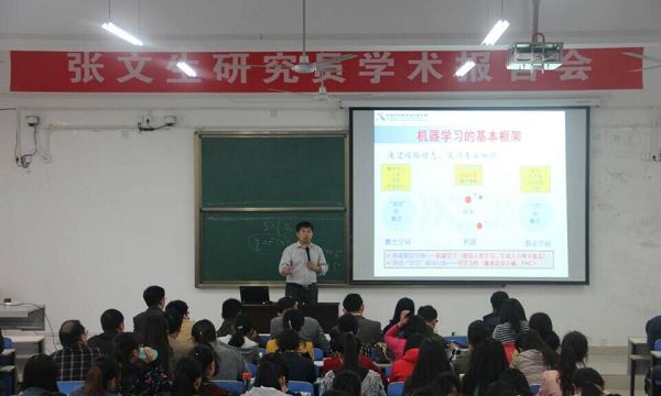 2015年10月25日上午,应计算机与信息技术学院邀请,中国科学院自动化研究所张文生教授在信阳师范学院计算计楼103教室作学术报告。报告题目为“机器学习的基石:样本的可学习性”。计算机学院院长邬长安,党总支书记刘党英,副院长黄俊,副书记谢蕾,副院长刘宏兵等领导以及计算机学院部分教师、研究生和本科生聆听了本场报告会。
