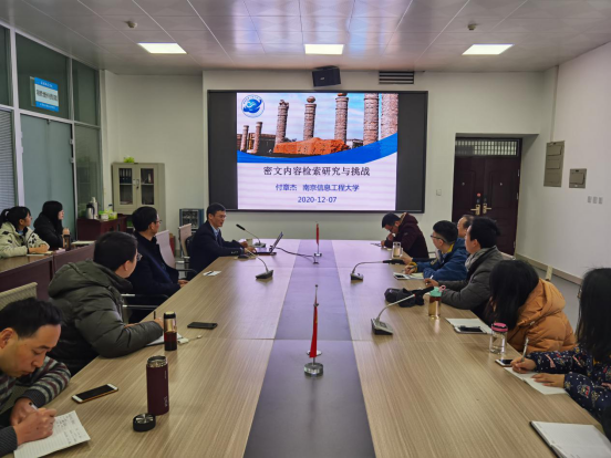 12月7日,应计算机与信息技术学院邀请,南京信息工程大学付章杰教授来我校开展学术交流活动。付章杰在计算机楼203会议作了题为“密文检索研究与挑战”的学术报告。报告会由计算机与信息技术学院副院长冯岩主持,计算机与信息技术院部分老师和研究生共计40余人聆听了报告。