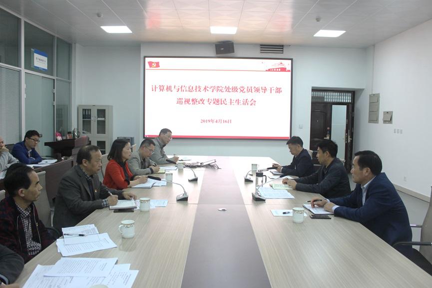 4月16日下午,按照省委巡视组要求和校党委巡视整改工作部署,计算机与信息技术学院分党委书记刘党英在计算机楼203会议室主持召开学院处级党员领导干部巡视整改专题民主生活会。校党委书记宋争辉、党委办公室主任林兴岚、党委组织部部长唐景旺到会指导。学院教工党支部委员、党小组组长列席会议。