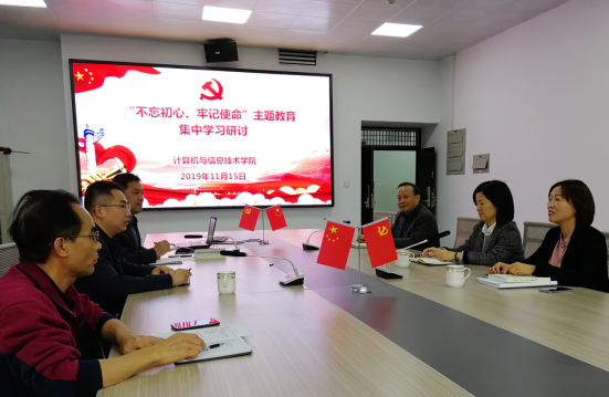 根据学院“不忘初心、牢记使命”主题教育活动方案安排,11月14、15日,计算机与信息技术学院处级干部围绕“加强思想政治工作 落实立德树人根本任务”进行了第三次集中学习,并于15日下午集中研讨交流。校“不忘初心、牢记使命”主题教育第二巡回指导组成员、人事处副处长汪霞参加会议并就学院推进主题教育进行了指导。