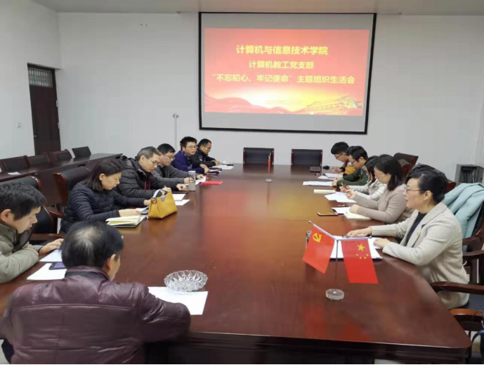 按照省委、校党委“不忘初心、牢记使命”主题教育领导小组的统一安排和部署,紧扣“不忘初心、牢记使命”主题,深入学习贯彻习近平新时代中国特色社会主义思想,组织党员盘点参加主题教育的收获提高,查找违背初心和使命的差距不足。计算机与信息技术学院4个教工党支部和5个学生党支部分别召开了 “不忘初心、牢记使命”主题教育专题组织生活会,顺利完成党员民主评议工作。专题组织生活会由各支部书记主持,学院党员领导干部积极参加所在党支部的专题组织生活会,学院党委另派党委成员列席各党支部的专题组织生活会,并进行了点评。