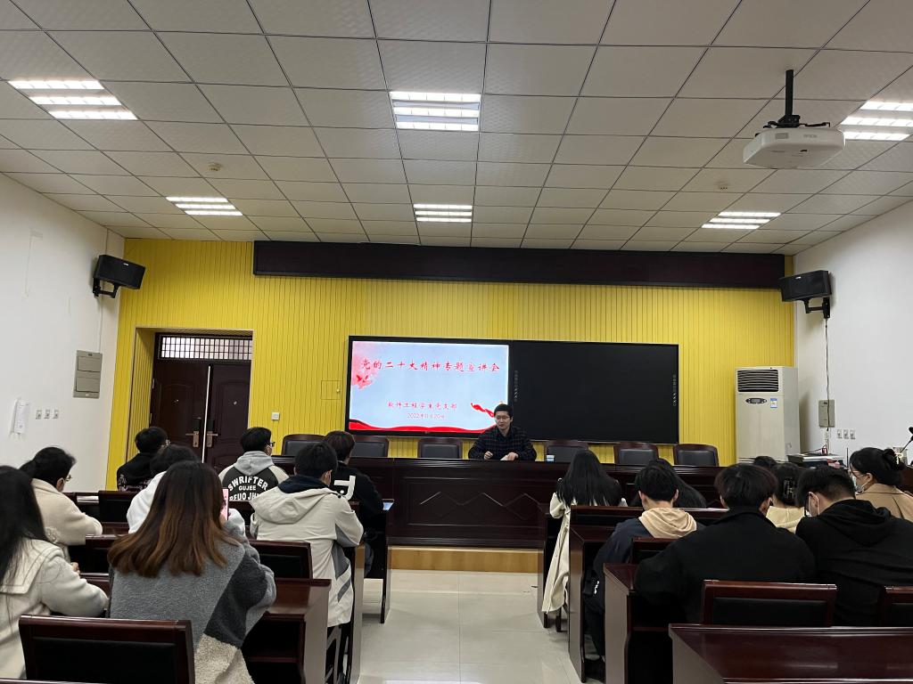 软件工程学生党支部在学院410会议室开展学习党的二十大精神主题党日活动,党支部书记徐崇茗为支部全体党员做专题宣讲。