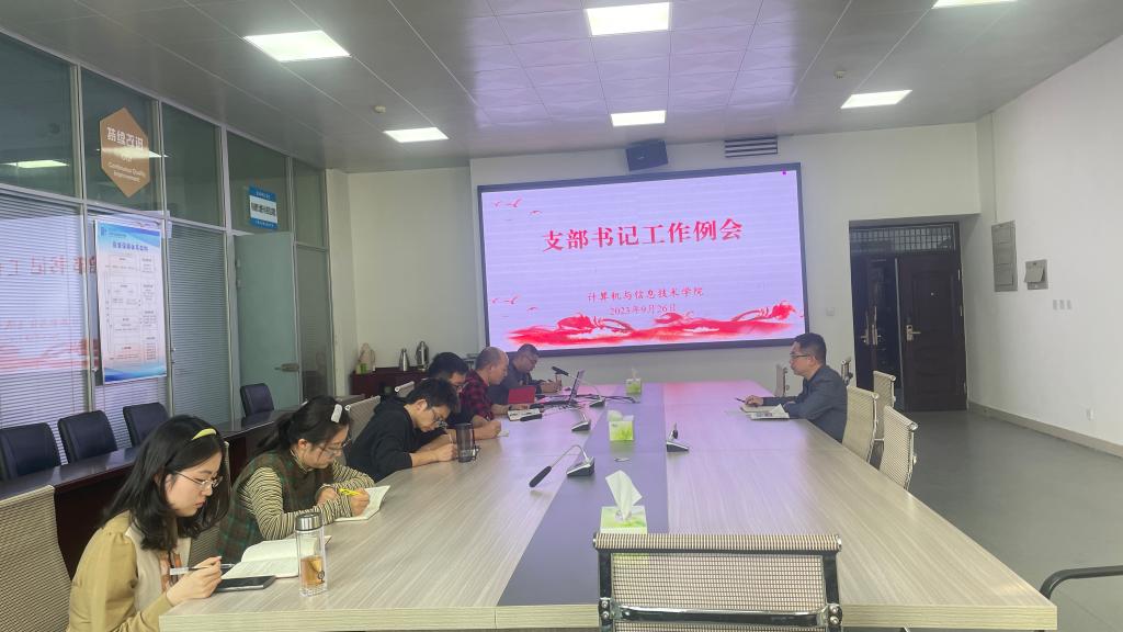 在计科楼203会议室召开党支部书记工作例会,研究部署近期学院党建工作。会议由学院党委书记熊炎主持,全体党支部书记参加会议。