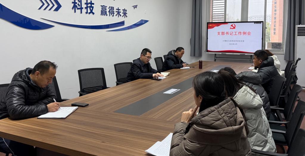 在计科楼506会议室召开党支部书记工作例会,学院党委书记熊炎、组织员李艳丽和全体支部书记参加会议。