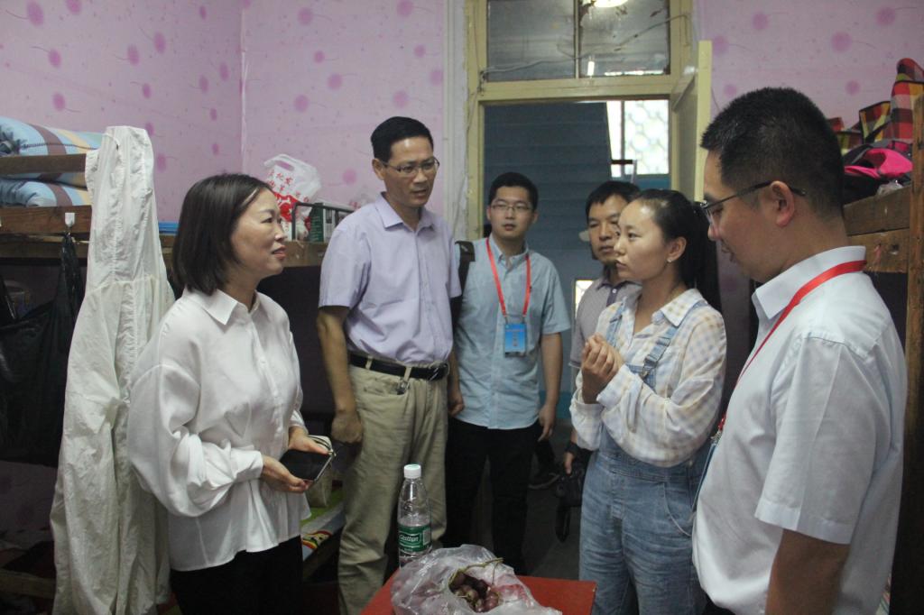 领导班子及辅导员前往新生宿舍楼,了解新生的住宿情况。学院领导亲切地与学生交流,拉近与学生的关系。祁传达表示希望新生在宿舍要和谐相处,保持宽容之心,在学习方面要相互帮助,共同进步。