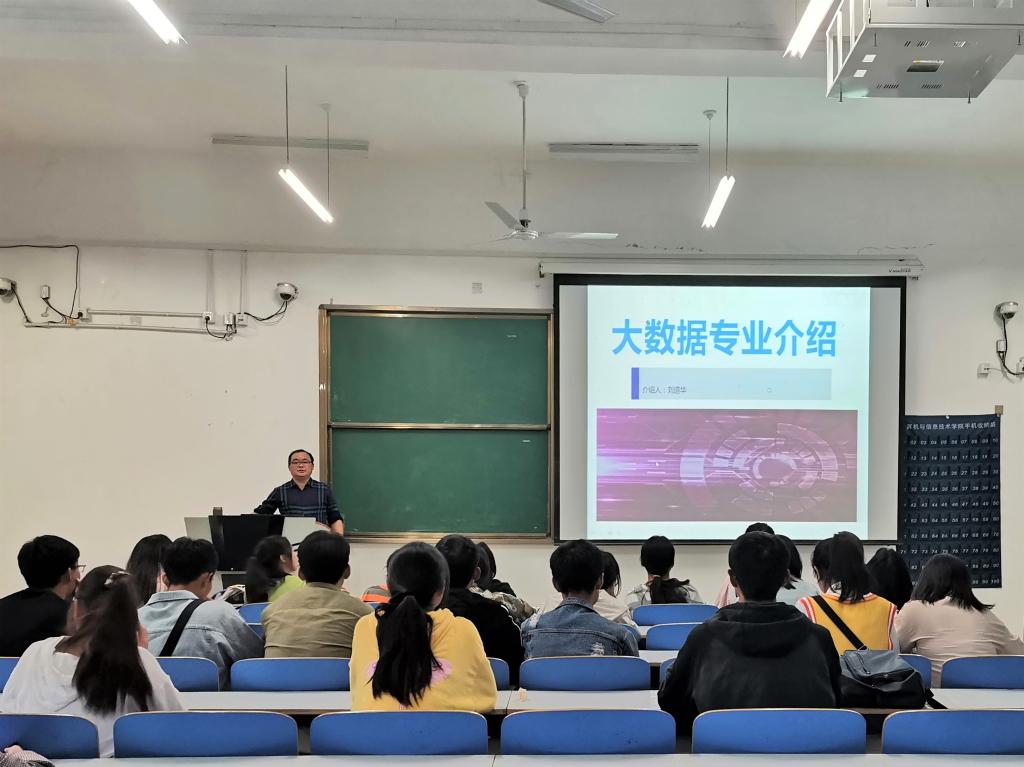 大数据专业新生讲述了广泛的就业前景和应用场景。他表示,大数据专业近几年的受关注程度颇高,就业前景优势明显,计算机网络和大数据应用分析的火热给本专业学生提供了更多机会。刘道华指出,离散数学、大数据分析与管理、云计算、汇编语言是新生专业学习的重点,建议大家深入学习其内涵,尽快适应各科课程,提高自己的专业实力。刘道华教授深入浅出的讲解让在场学子受益匪浅,同学们都认真聆听,积极配合,记录重点。