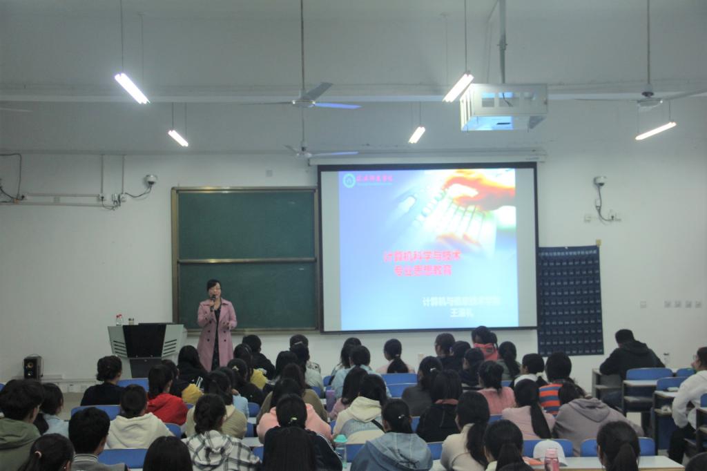 特邀计算机科学与技术专业负责人王淑礼教授进行授课,2019级辅导员徐崇茗与2019级计算机科学与技术专业全体学生到场聆听讲座。