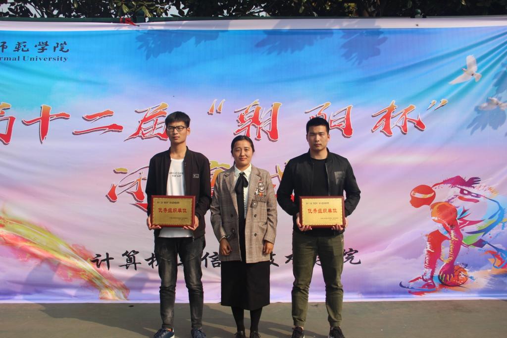 篮球宝贝热情活力的舞蹈与体育学院刚劲有力的跆拳道表演过后,颁奖典礼正式开始。物理电子工程学院、数学与统计学院、国际教育学院分别摘获本届“朝阳杯”男篮的冠、亚、季军。地理科学学院、音乐与舞蹈学院、商学院分别摘获本届“朝阳杯”女篮冠、亚、季军。地理科学学院球员覃昌利与物理电子工程学院球员赛孜古尔江荣获最有价值球员奖。杨昊等6位裁判荣获“金哨奖”。数学与统计学院等10个学院荣获精神文明单位称号。欧乐影院