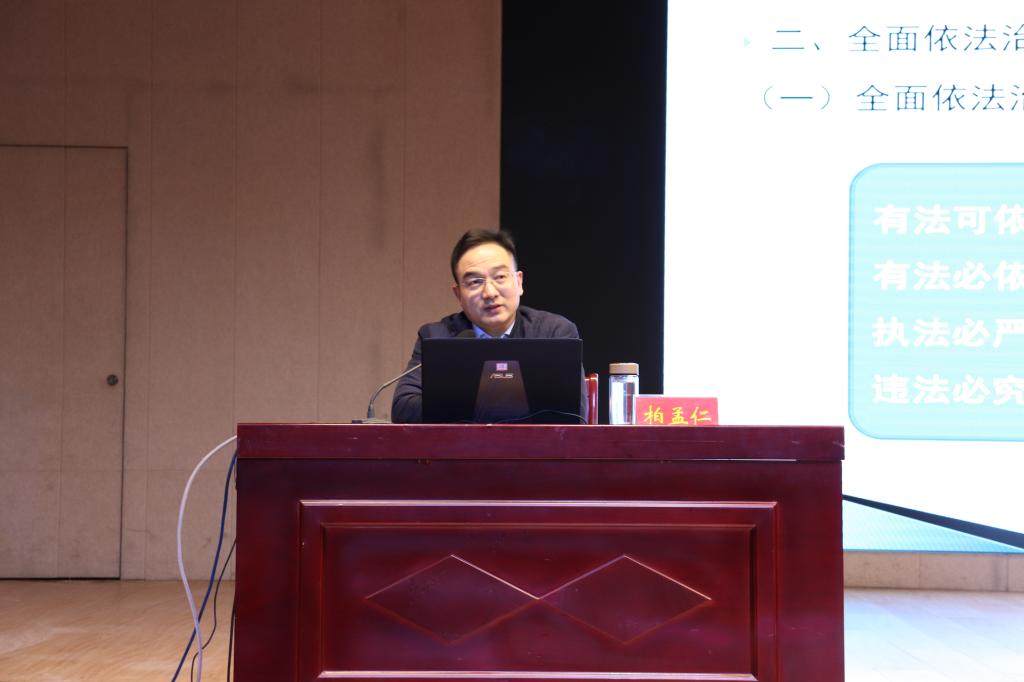 讲座中,柏孟仁以“全面依法治国战略背景下,大学生规则意识的养成”为核心,从全面依法治国战略的时代及历史背景、全面依法治国战略内涵及现实意义、大学生养成规则意识的必要性三个方面,通过列举众多具有现实教育意义的事例,详尽地向同学们讲解了在全面依法治国战略的实施下,形成规则意识的重要性。讲座中,“昆山反杀案”中杨海明正当防卫未被判刑、“呼格吉勒图奸杀冤案”历经十八年后终沉冤得雪,说明了我国法律法规系统不断完善与健全。讲座最后,柏孟仁将规则意识分为刚性规则与柔性规则两个方面,并以考试作弊为例,讲述了我校学生违纪处分的实施办法。他指出,学生应做到遵守规则,深入体会全面依法治国战略的内涵及现实意义,并告诫同学们应遵守校规校纪,养成良好规则意识。