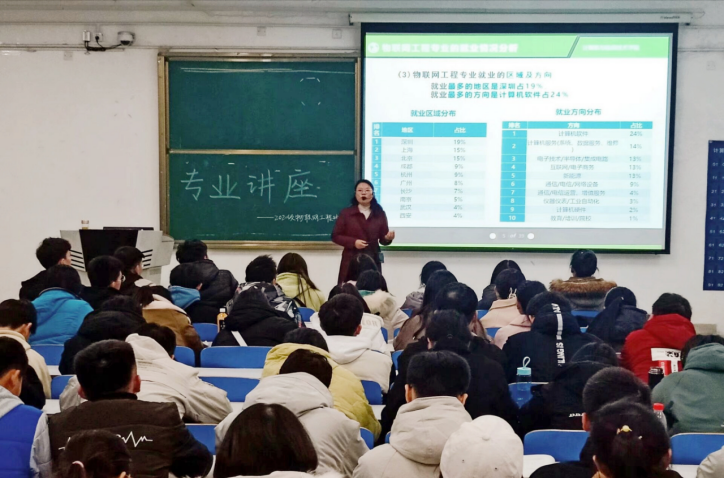 物联网专业系主任郭颂教授担任主讲,20级物联网工程班全体新生共同聆听本次讲座。