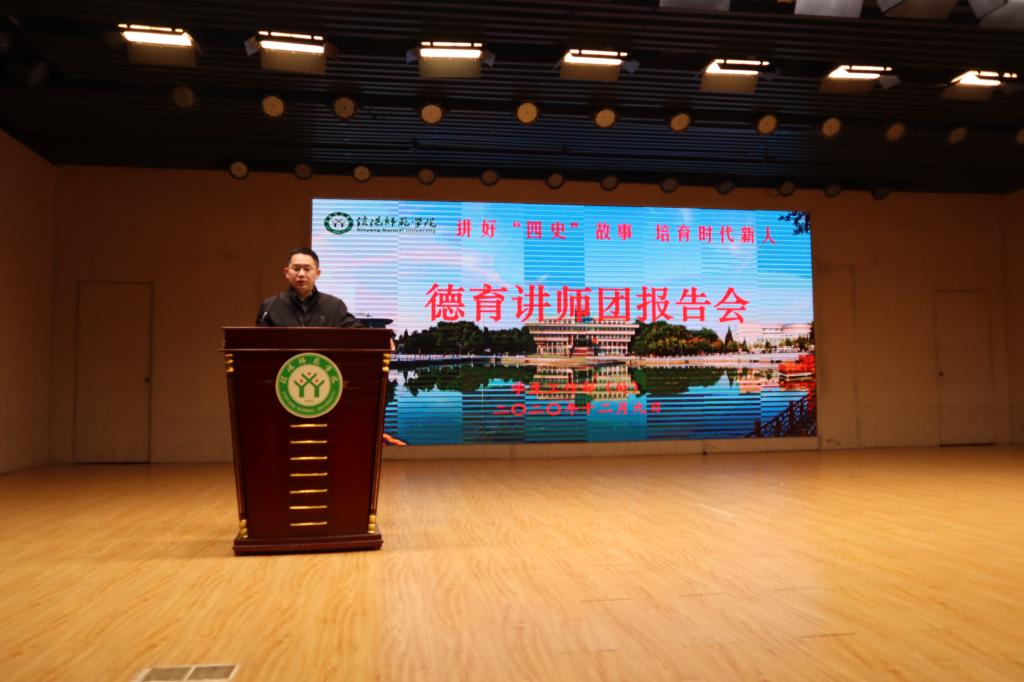 为响应校学生工作部(处)统筹安排,计算机与信息技术学院承办了以“讲好‘四史’故事,培育时代新人”为主题的2020级新生入学教育“德育讲师团”系列报告会活动。12月9日晚19:00,活动在理科楼报告厅顺利召开。计算机与信息技术学院党委副书记熊炎主持活动,体育学院副处级辅导员柴九昌、数学与统计学院党委秘书谢艳丽、马克思主义学院分团委书记孙绪曙、文学院辅导员郭子悦及历史文化学院辅导员邓皓出席本次会议,四百余名新生代表参加此次活动。