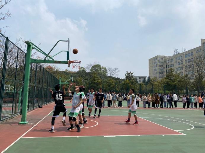 4月8日中午,计算机与信息技术学院男子篮球于西操篮球场3号场地对战文学院。