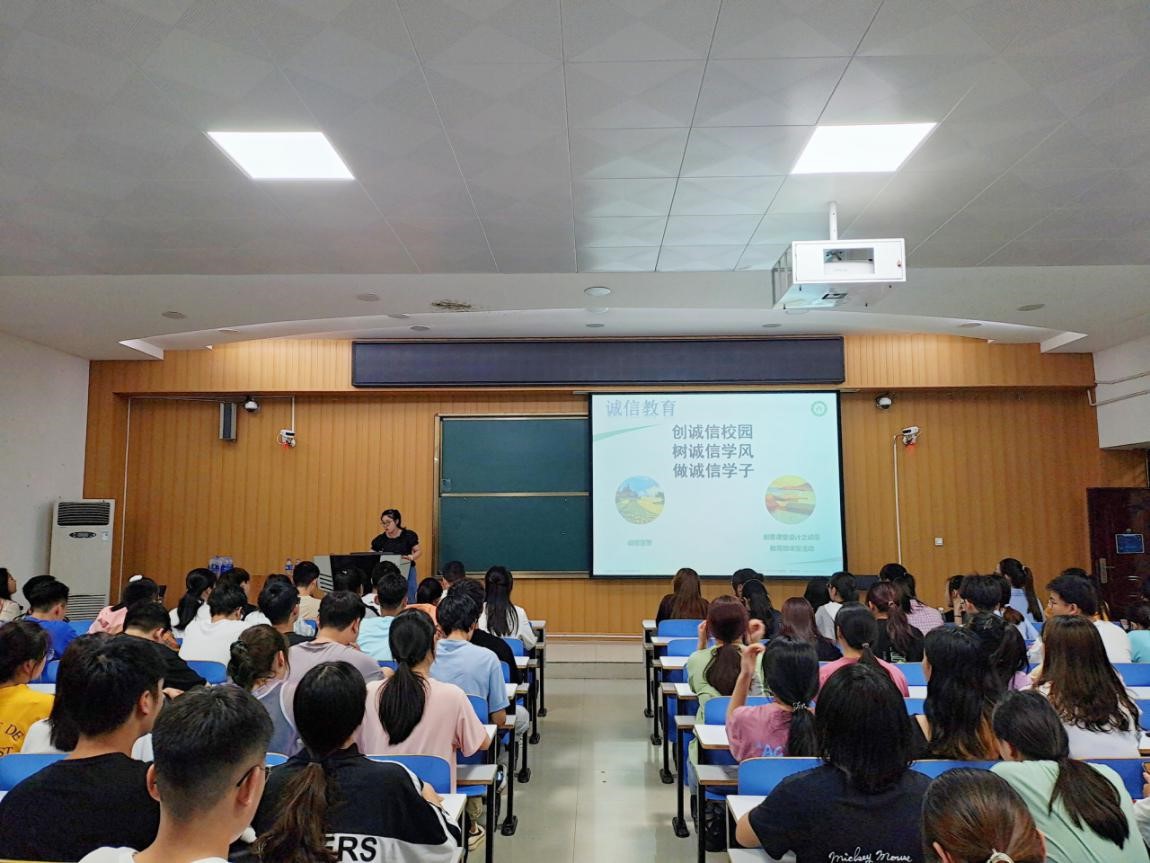 6月19日晚7时30分,计算机与信息技术学院于计科楼107教室召开诚信主题教育大会,辅导员王丝雨携2020级全体学生参会。