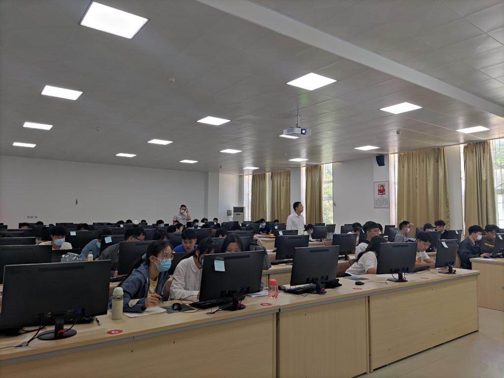 在计科楼305机房举行ACM程序设计大赛。2019、2020和2021级学生参与此次比赛,院长冯岩、副院长李然、指导老师樊建伟到场监督。