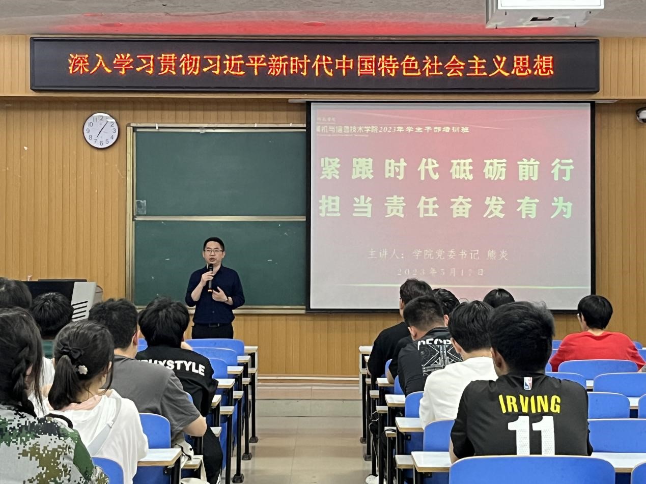 5月17日,学院党委书记熊炎给学生干部培训班作专题辅导报告,学院学生干部培训班全体学员共同参加了报告会。