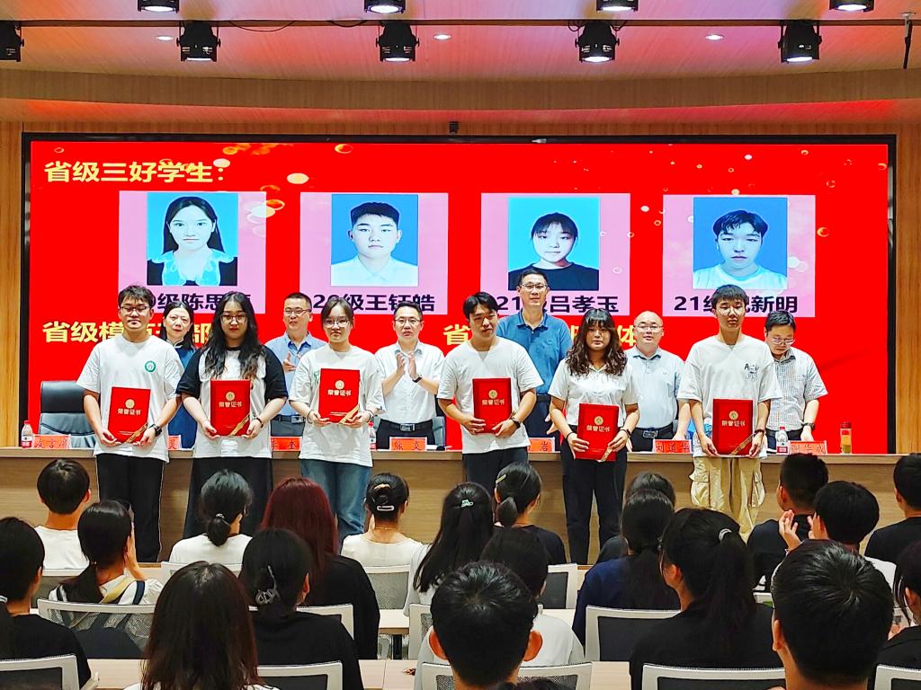 在表彰环节,副院长刘道华、李艳灵分别宣读了河南省三好学生、河南省优秀班干部、河南省先进班集体和计算机与信息技术学院新一届“计信之星”获奖名单。学院领导共同为获奖代表颁发荣誉证书。