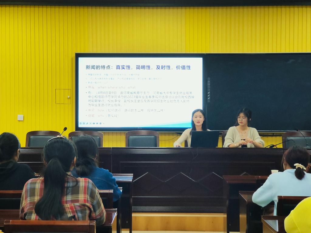 会议伊始,李吉娈、孙诗颖围绕新闻文体要求、写作技巧及注意事项进行讲解,针对会议、比赛、活动等应用场景中新闻选材和遣词的不同运用方式进行分析;张耀扬在视频拍摄与剪辑技巧方面,从焦距、角度、光圈、画幅等多个角度分享拍摄时的注意事项,促进欧乐影院