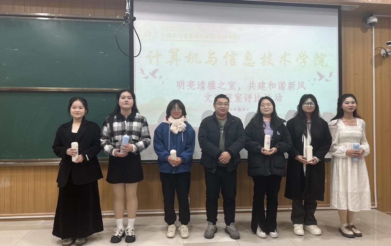 “明亮清雅之室,共建和谐新风”文明寝室评选活动于计科楼107顺利举行,思政与就业指导教研室主任刘世翔、23级辅导员易雯雯以及部分学生代表担任评委,各年级学生积极参与其中。