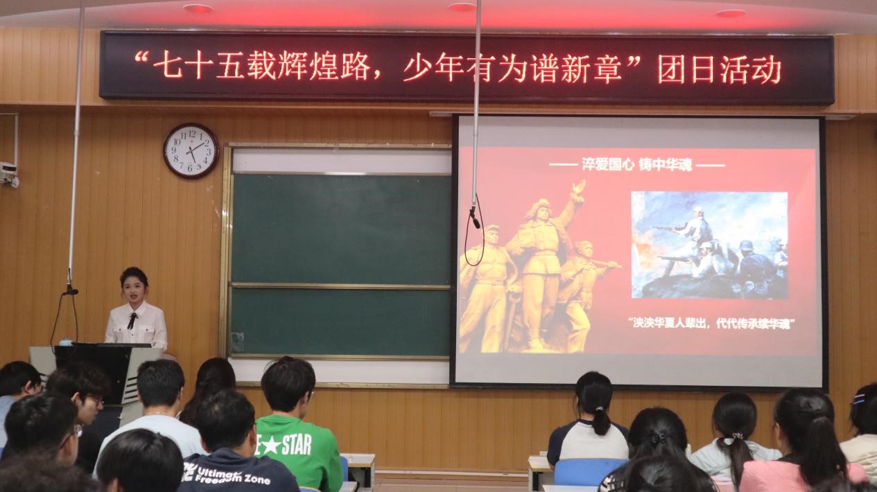 于计科楼107教室顺利举办“七十五载辉煌路,少年有为谱新章”主题团日活动,学院团委老师易雯雯、团干部及团员代表参加活动。本次活动由胡诗涵主持。
