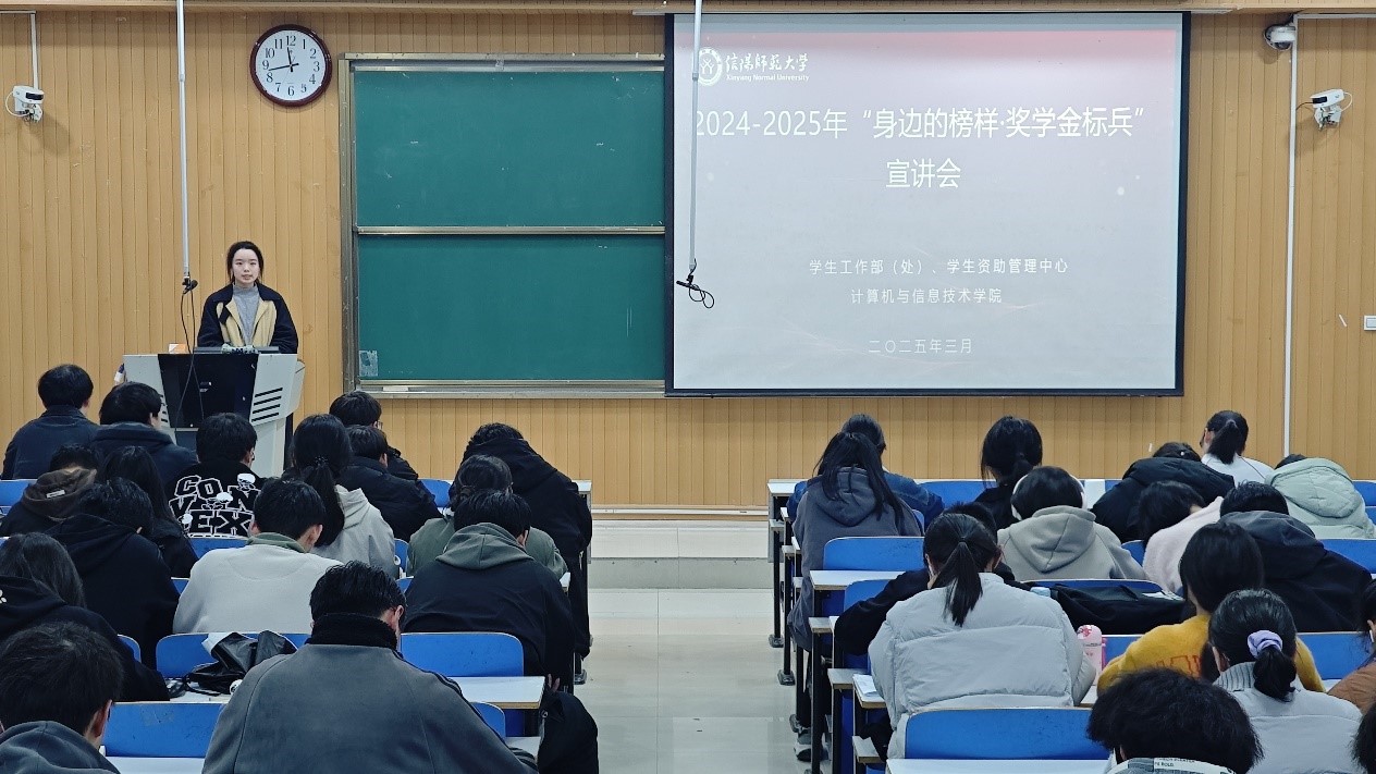 于计科楼107教室组织开展“2024-2025年身边的榜样·奖学金标兵”宣讲会,奖学金标兵优秀代表和欧乐影院