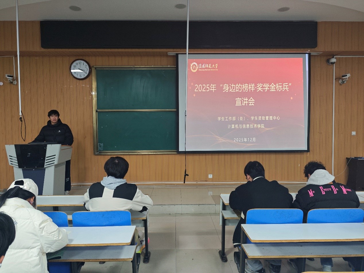 于12月18日晚在107教室举办“身边的榜样·奖学金标兵”宣讲会。本次活动特邀三位来自不同学院的优秀奖学金获得者进行经验分享,2025级全体同学参加。