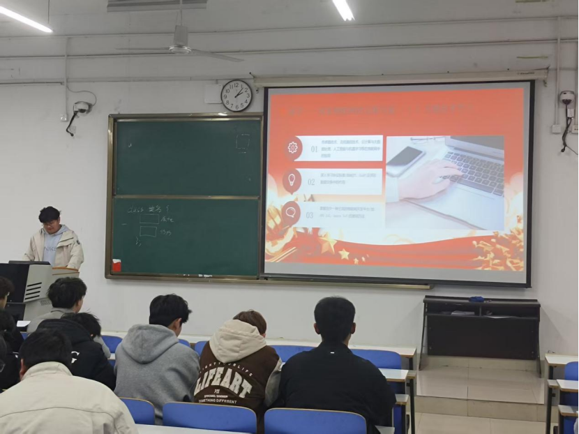 24级物联网工程一班于计科楼103教室开展“深学细悟,笃行实干”主题团课。本次团课由团支书刘开心担任主讲人,该团支部全体成员积极参与。