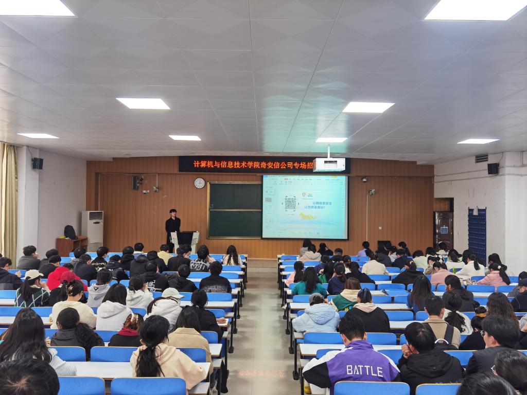 为更好地搭建用人单位与毕业生双向选择平台,持续拓宽毕业生就业渠道,加快推进2023届毕业生就业工作,3月15日,计算机与信息技术学院举办了奇安信科技集团股份有限公司校园专场招聘会。学院党委副书记李奎,思想政治教育与就业指导教研室主任刘世翔,辅导员易雯雯,200余名2023届毕业生共同参加了招聘会。