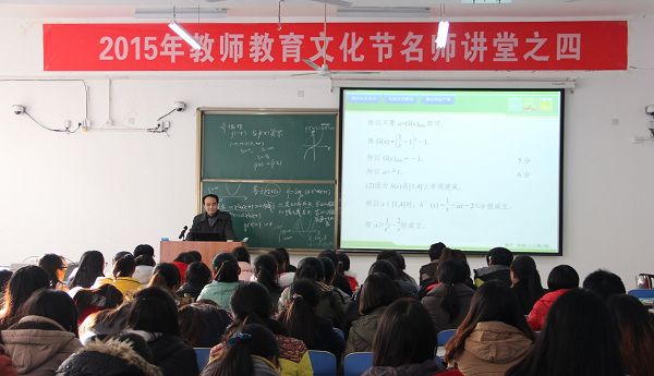 12月2日下午,计算机学院在计科楼101教室举办了教师教育文化节系列之名师讲堂活动。我校优秀校友鲁山一高数学老师潘庆丰上了一堂《函数的单调性与导数》示范课。计算机学院全体教师、各高校教师及13级计科班全体学生一同参加了此次活动。