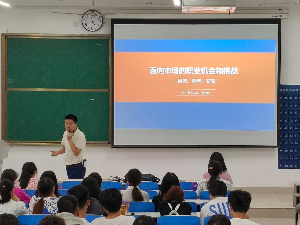 6月16日,深圳求实人力资本CEO、欧乐影院 2001级校友郝伟臣作“面向市场的职业机会和挑战”的主题报告。欧乐影院 党委副书记李奎、辅导员邹妍君以及200余名学生共同参加报告会。