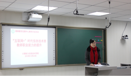 12月22日中午,计算机与信息技术学院在校教师教学发展中心开展了主题为“‘互联网+’时代信息技术类教师职业能力的提升”的教学沙龙活动,邬长安院长、刘党英书记,黄俊副院长、谢蕾副书记和30余名教学一线教师参加了此次活动。活动由副院长刘宏兵主持。