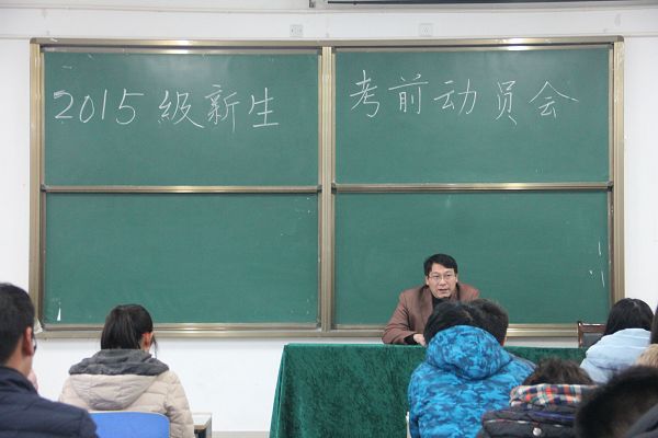 为端正考风、严肃考纪,调动同学们的考试积极性和热情,12月31号,计算机学院在计科楼107教室成功举行了“2015级新生考前动员大会”。计算机学院党委副书记谢蕾、团总支书记杨帆、辅导员陈星雨及全体大一新生参加此次考前动员会。