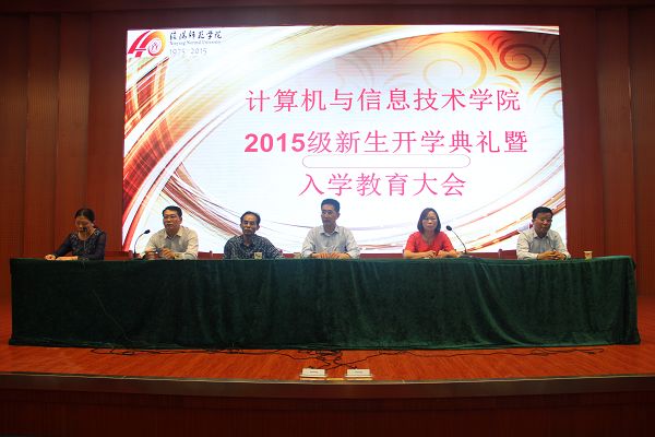9月29日下午,我校计算机与信息技术学院2015级新生开学典礼暨入学教育大会隆重举行,院长邬长安,党总支书记刘党英,副院长黄俊,刘宏兵,副书记谢蕾等领导老师以及15级新生参加了此次大会,大会由党总支书记刘党英主持。