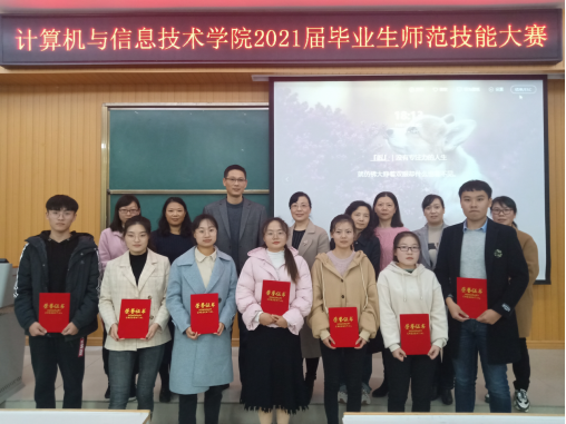 历来重视计算机科学与技术专业学生的师范技能培训和指导,成立了专门指导团队,加强学生的师范技能训练和指导。在历届省高等学校师范类专业毕业生教学技能比赛中,多次取得一等奖的好成绩。