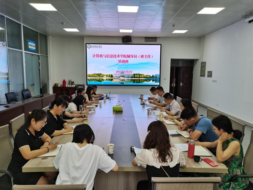 6月2日,计算机与信息技术学院举办辅导员(班主任)培训班,深入学习贯彻习近平新时代中国特色社会主义思想,进一步提高辅导员(班主任)队伍政策理论水平和履职本领。学院党委书记熊炎作专题辅导报告,党委副书记李奎和全体辅导员、班主任共同参加培训。