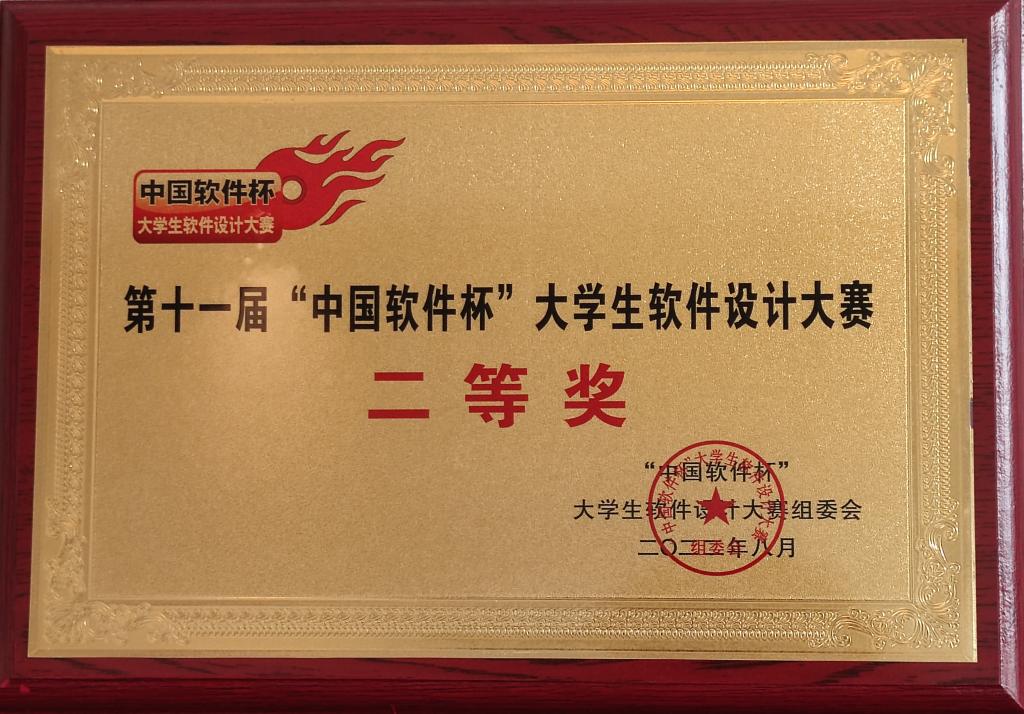 软件工程、物联网工程专业学生陶沛霖、祝新明、卢俊杰和赵航语组成的参赛队(指导教师:尤磊),荣获全国二等奖。
