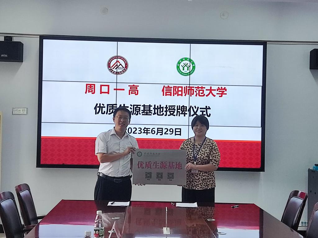 为吸引优秀生源、扩大我校影响力、助推学校高水平师范大学建设,根据学校招生宣传工作安排,2023年6月26日至30日,计算机与信息技术学院由副院长李然、谢华成及骨干教师等6人组成招生宣传工作组,抢抓高考志愿填报期间的有利时机,至河南省周口地区进行招生宣传及优质生源基地授牌工作。