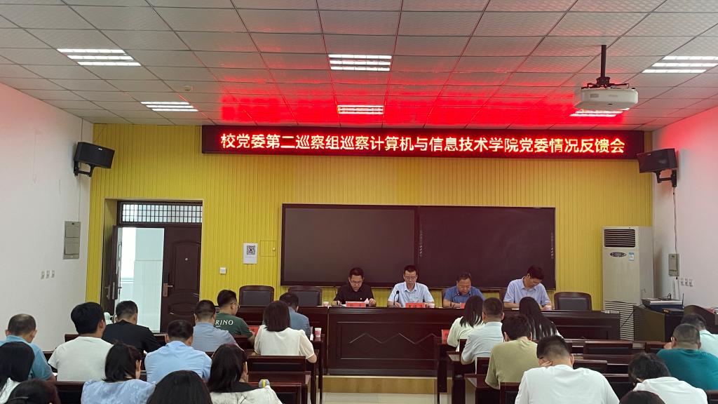 7月4日,校党委第二巡察组巡察计算机与信息技术学院党委情况反馈会在计科楼410召开。反馈会上,第二巡察组组长周经兵反馈了巡察情况,党委巡察工作领导小组成员、党委巡察办主任王振海对巡察整改工作提出要求。学院党委书记熊炎就做好巡察整改工作作表态发言。第二巡察组全体成员、巡察办工作人员、学院领导班子成员、全体教职工、离退休教职工代表和学生代表参加会议。会议由熊炎主持。