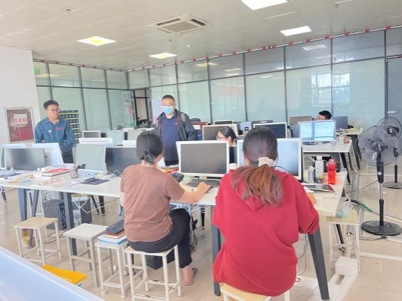 走访过程中,熊炎书记一行参观实训基地,与基地负责人开展深入交流。交流过程中,熊炎书记一行听取实训基地的发展历程、校企业合作成效、实训学生的学习效果、实习单位推荐、毕业论文准备等方面的情况,并就校企深度融合、人才培养等提升学生能力与促进学生就业等方面内容开展深入交流和沟通,对实训基地提高实训效果、加强学生管理和安全教育等方面提出意见和建议。