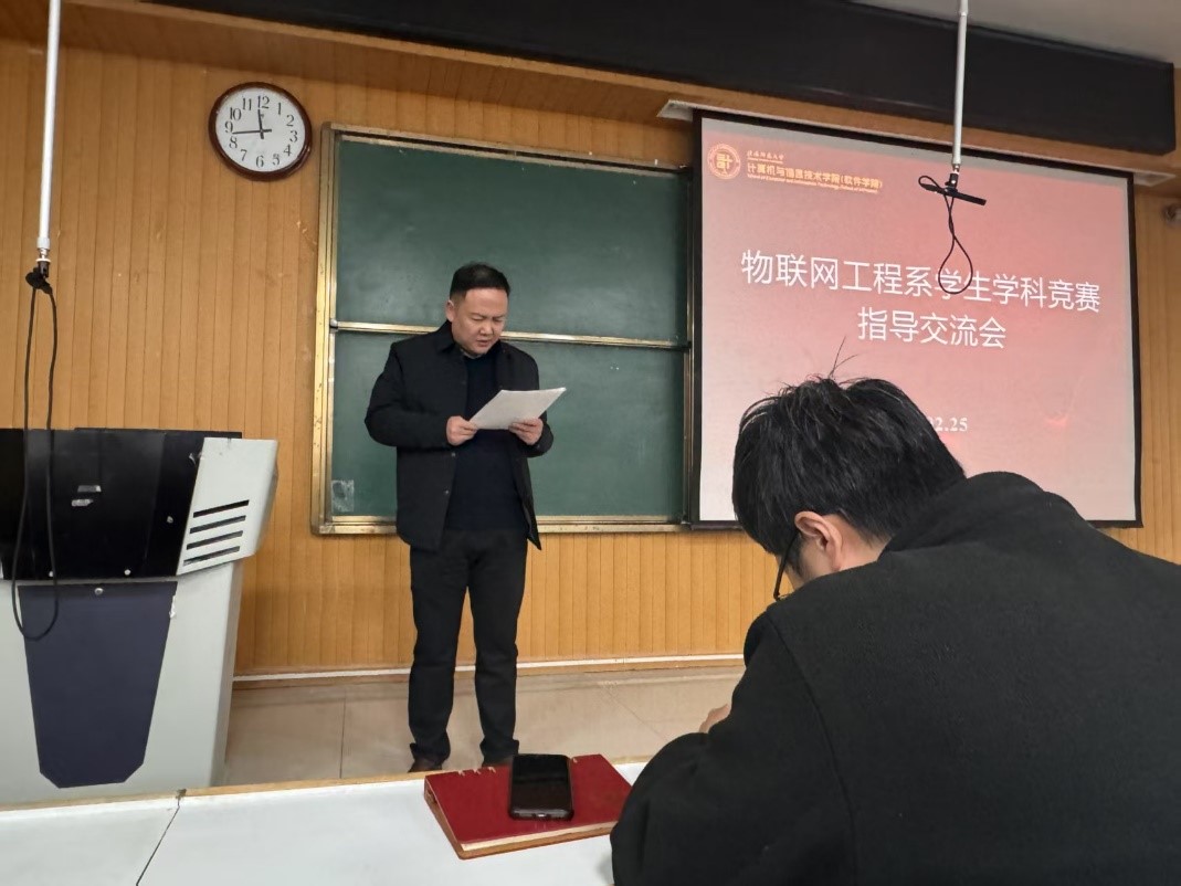 为了加深学生对物联网相关学科竞赛的了解与认识,促进学生实践能力和创新精神培养,激发参加学科竞赛的积极性,2月25日下午16:00,物联网工程系在学院107教室成功举办了学生学科竞赛指导交流会。学院党委副书记杨阳、副院长尤磊、物联网工程系全体教师和2024级物联网工程专业学生参加了交流会,会议由物联网工程系主任孙剑主持。