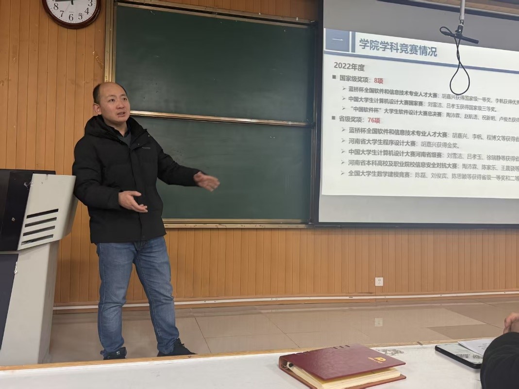 会议伊始,杨阳强调了学科竞赛对学生发展的重要性,并对学院出台的《大学生学科竞赛实施办法》进行了详细解读。他指出,学科竞赛不仅是学生展现自我、提升能力的平台,更是学院培育创新型人才的关键路径。通过参与学科竞赛,学生能将理论知识运用到实际项目中,锻炼解决问题的能力,培养团队协作精神与创新思维,这对于学生未来的职业发展和学术深造都具有不可忽视的推动作用。