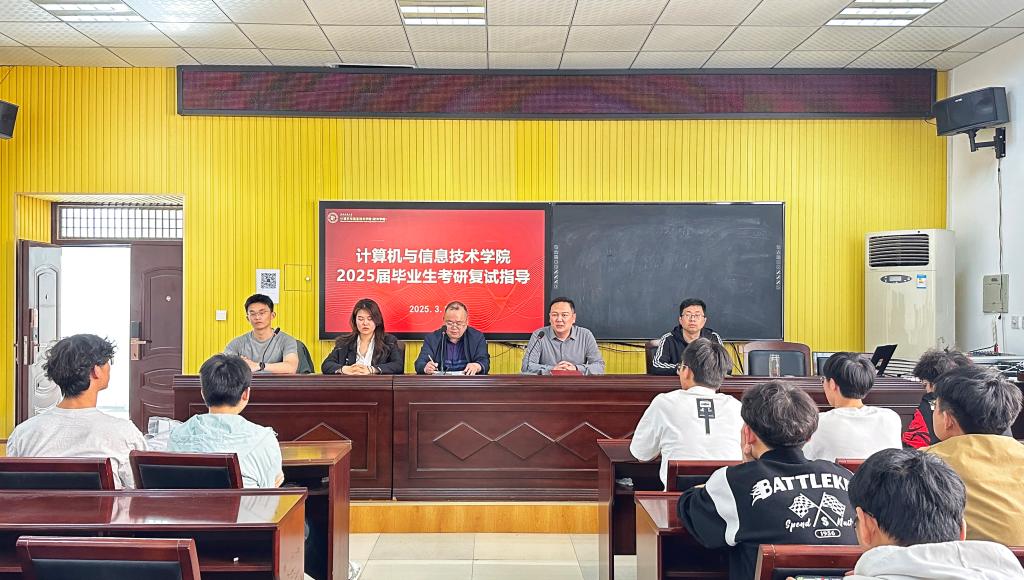 于计科楼410教室举行2021级毕业生考研专题辅导会,进一步做实做细考研复试指导服务工作。学院党委副书记杨阳、副院长刘道华、物联网工程系主任孙剑、郭彤老师及2021级准备参加考研复试的学生参会。