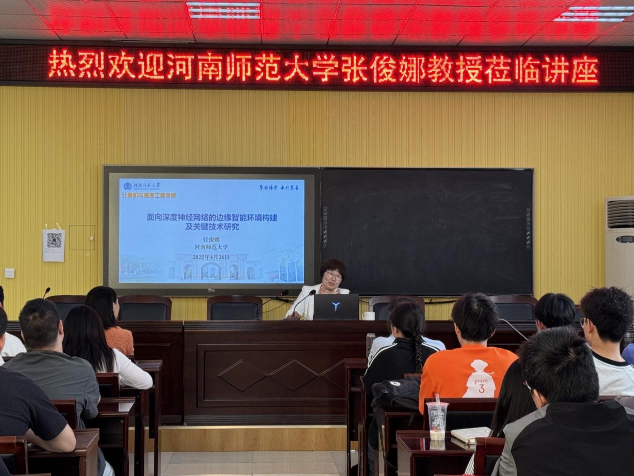 邀请,郑州轻工业大学教授吴怀广、河南师范大学教授张俊娜在该院410会议室分别作了题为“基于深度学习的实体解析方法”、“面向深度神经网络的边缘智能环境构建及关键技术研究”的学术报告。报告分别由学院冯岩教授和李艳灵教授主持,学院教师、研究生聆听了讲座。