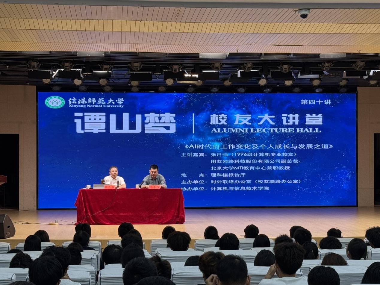 9月28日下午,我校1996级计算机与信息技术学院优秀校友、用友网络科技股份有限公司副总裁、北京大学MTI教育中心兼职教授张月强于理科楼报告厅作题为“AI时代的工作变化及个人成长与发展之道”的专题讲座。