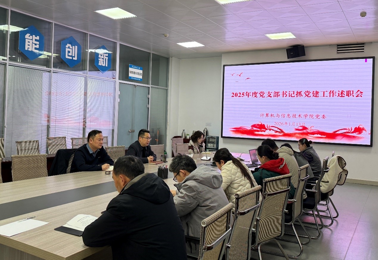 党委在计科楼506会议室召开2025年度党支部书记抓党建工作述职大会。党委书记熊炎主持会议,党委副书记杨阳、各党支部书记参会。