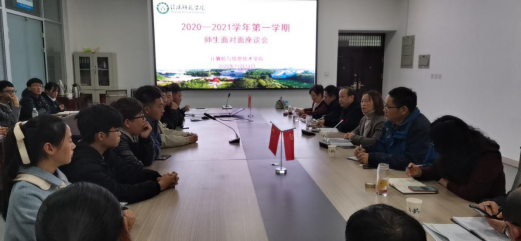 1124日晚,2020-2021学年第一学期师生面对面座谈会在计算机楼203会议室召开。学院党委书记刘党英、院长祁传达、副院长冯岩、党委副书记熊炎、各基层教学组织负责人及各班学生代表40余人参加了座谈会。座谈会由冯岩主持。