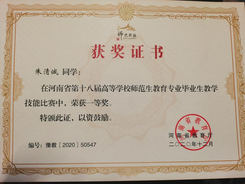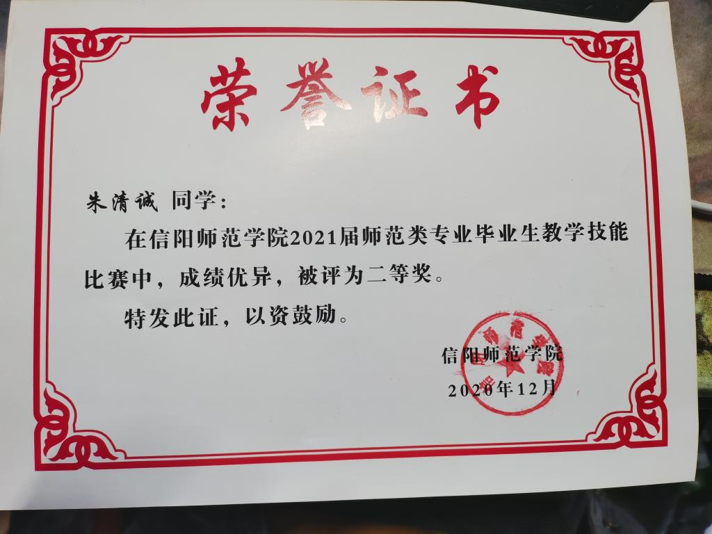 2020年信阳师范学院师范类毕业生教学技能比赛二等奖-朱清诚