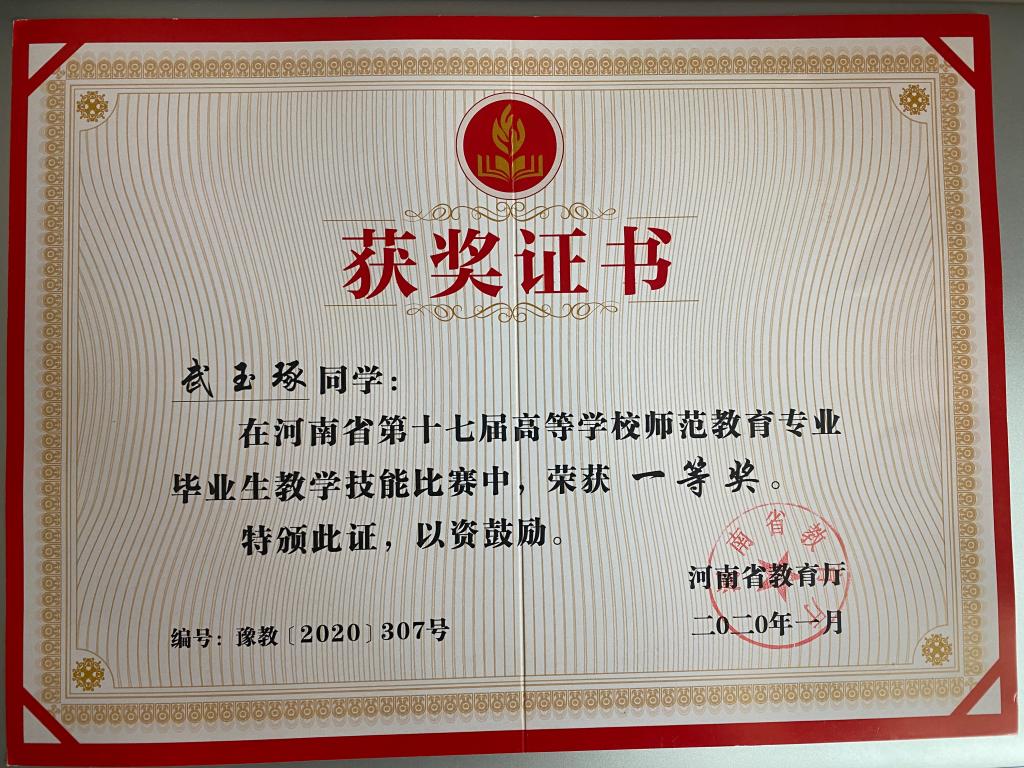 2019年河南省高等学校师范生教育专业毕业生教学技能比赛一等奖-武玉琢