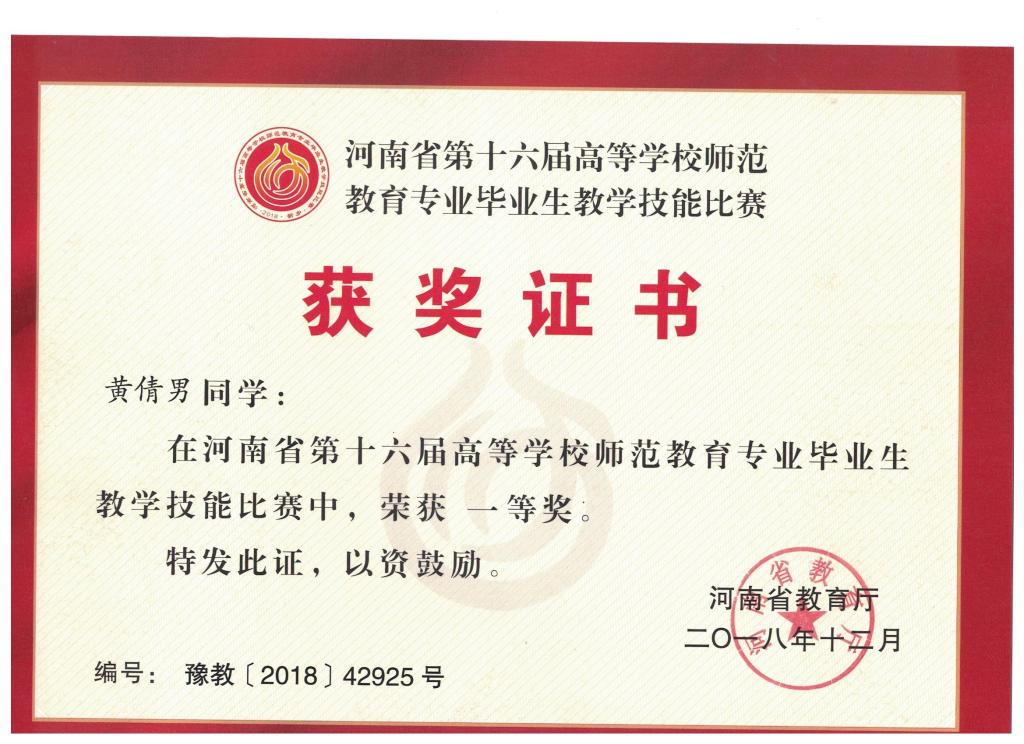 2018年河南省高等学校师范生教育专业毕业生教学技能比赛一等奖-黄倩男